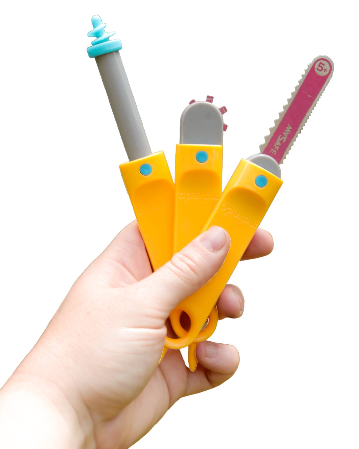 Safe Saw - A steel blade with no sharp edges to swiftly cut cardboard, not fingers.